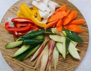 そしたら1センチくらいの大きさに半月切りにします。切ったら、水にさらし、でんぷん質を取ります。