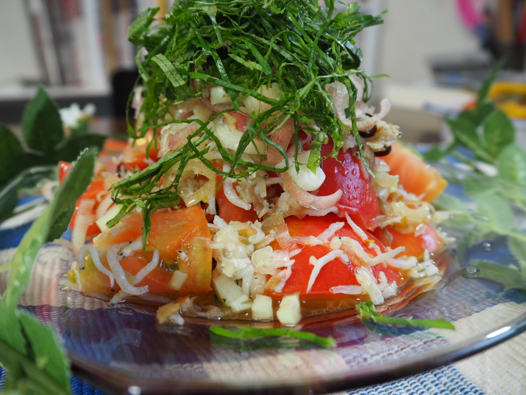 【すぐできる】簡単おつまみ「トマトとじゃこのガーリックソテー」のレシピ