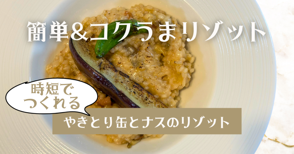やきとり缶たれ味×ナスで作るコクうまリゾット|缶詰料理王の簡単レシピ