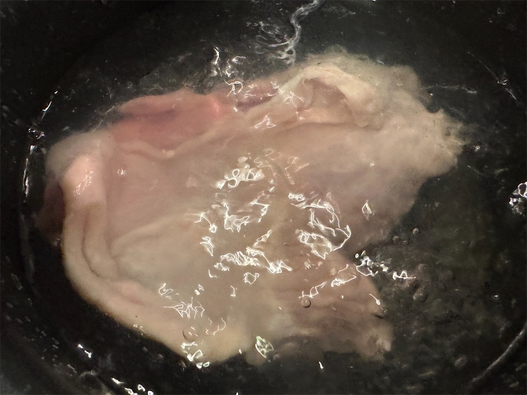 鶏もも肉がつかるぐらいのお湯を沸かします。