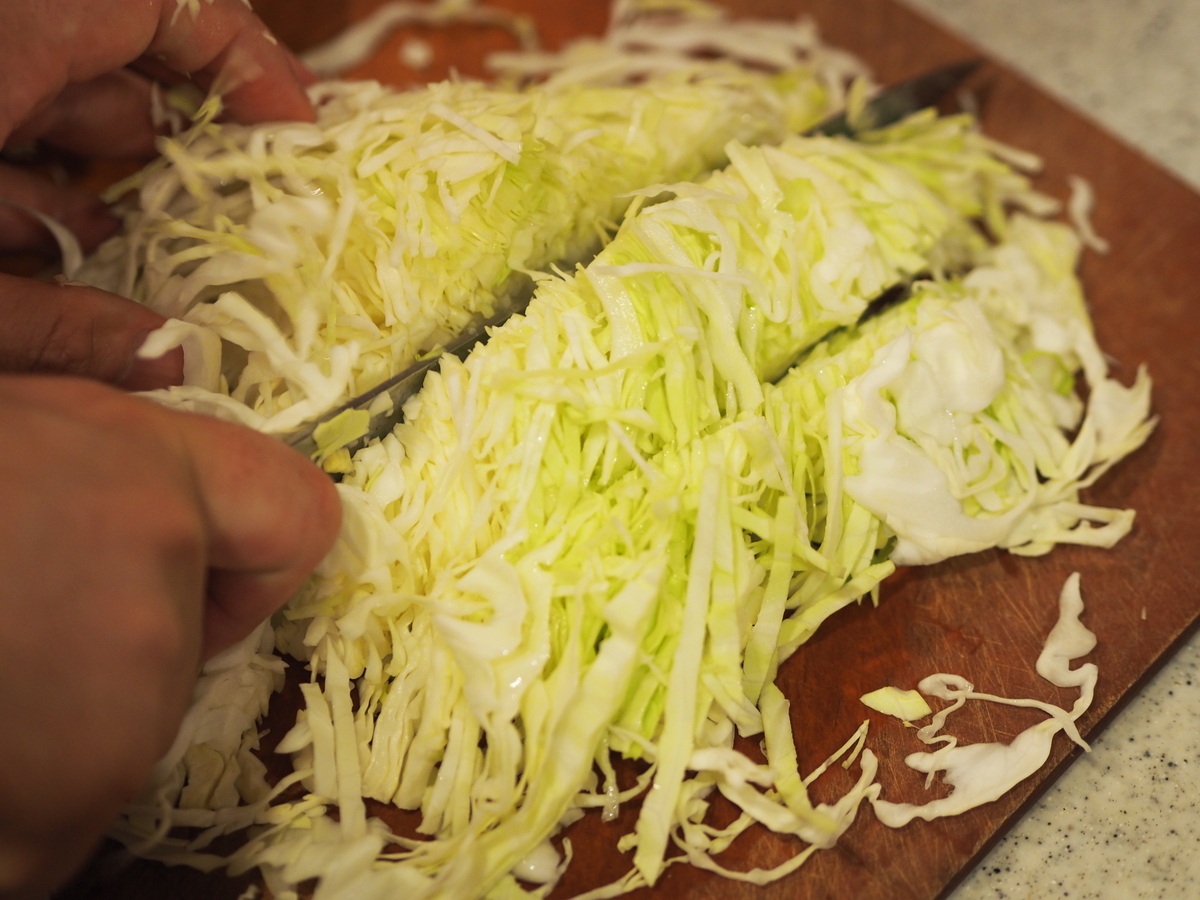千切り、みじんぎり、ざく切りと、いろいろな切り方でコールスローは食感を変えることができます。