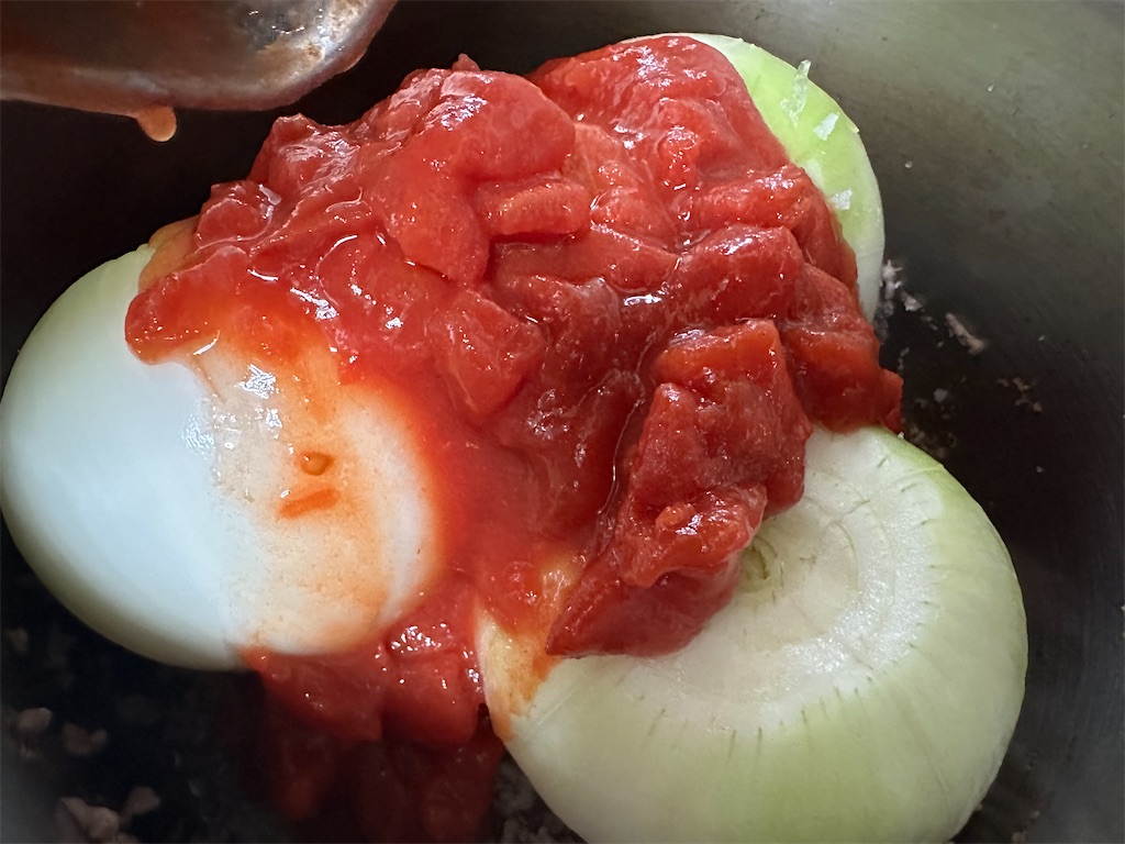 「丸ごと玉ねぎのトマトミンチ煮込み」のポイント