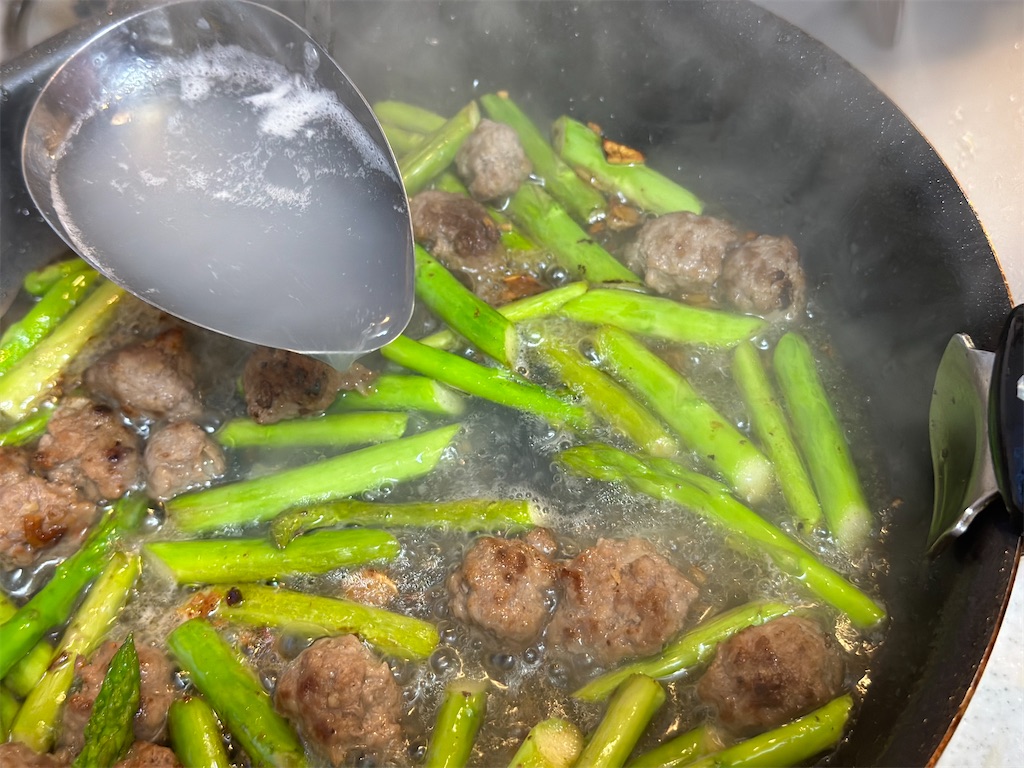 「合い挽きミンチとアスパラのスパゲティ」の作り方