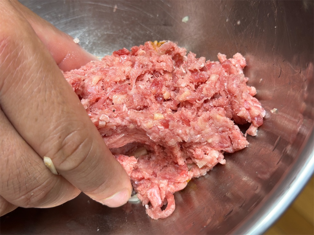 ②ミンチを練る