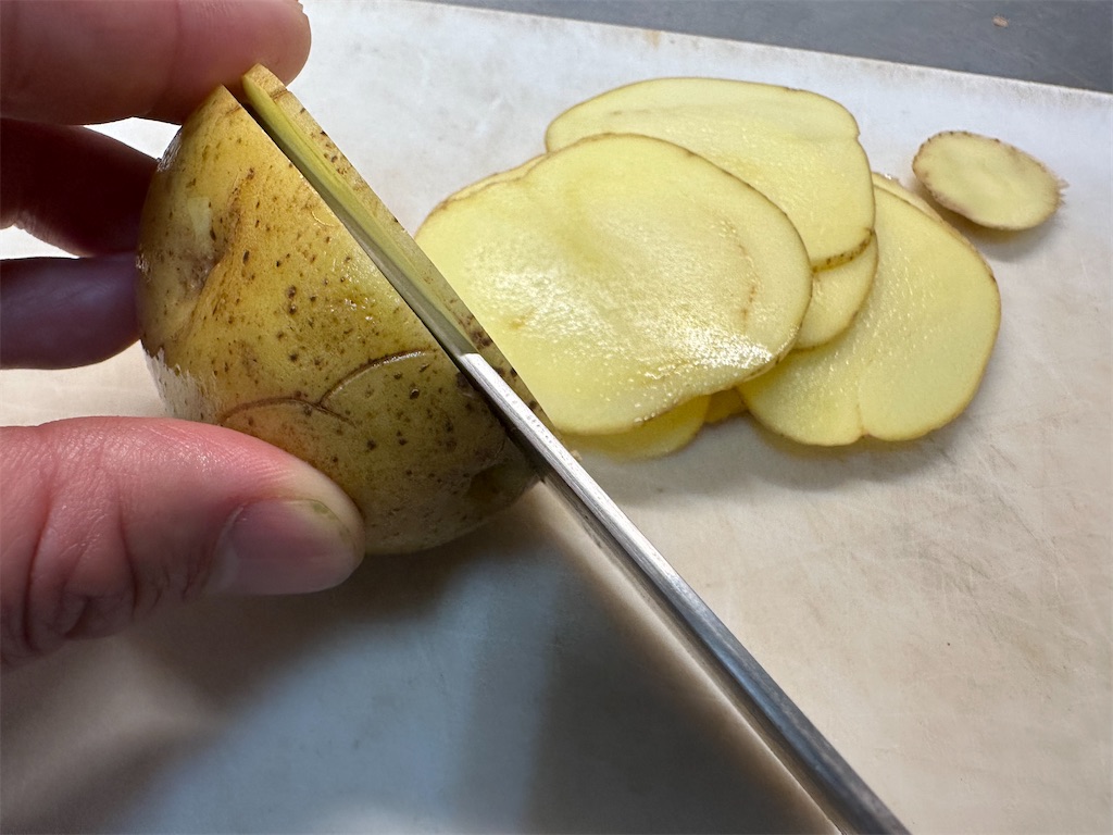 じゃがいもはよく洗い、皮付きのまま薄切りにし、