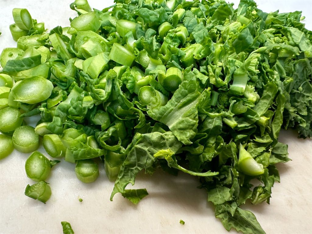 塩を馴染ませている間に、なばなを5ミリ幅にカットします。