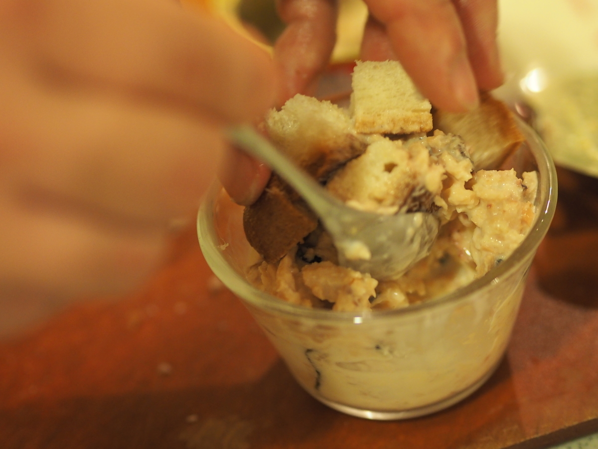 パンを下の方にしておくと、つけパンのような味わいになるのでお好みで詰め方も変えてみましょう!