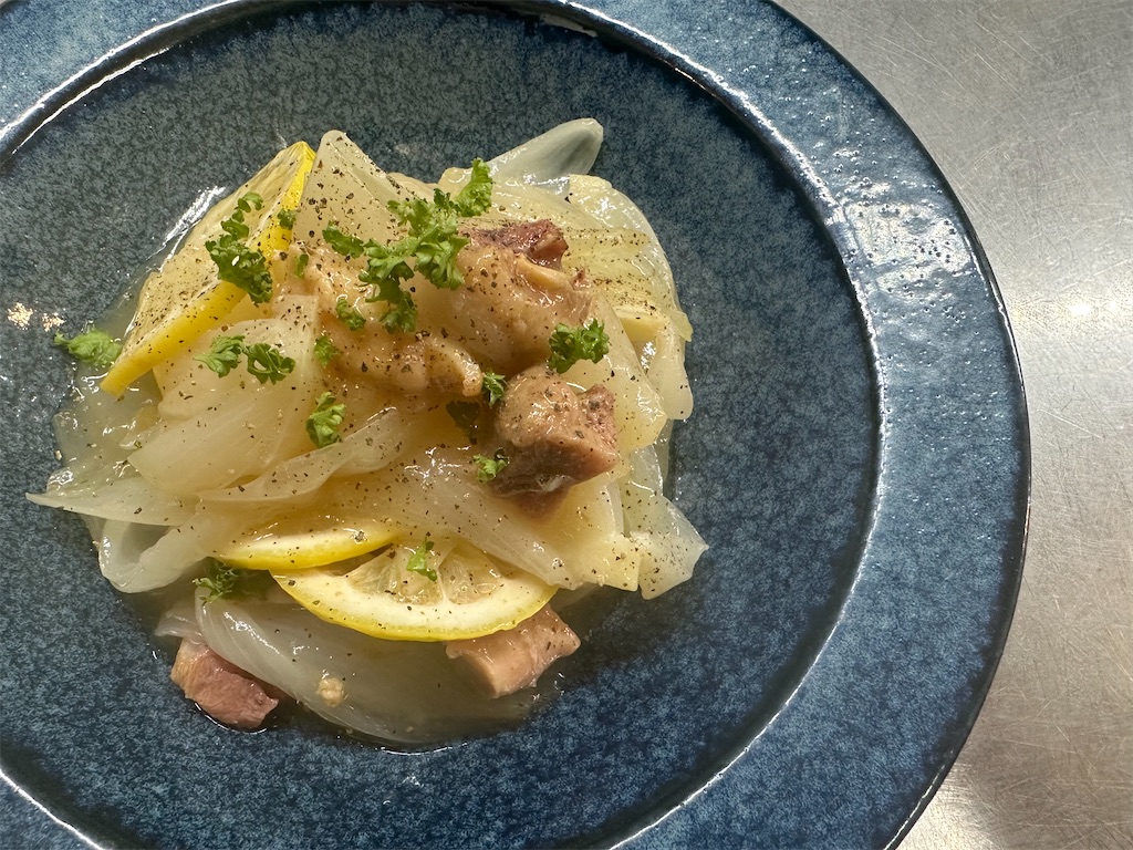 甘みたっぷりに仕上がる「新玉ねぎとやきとり缶塩レモン味のエチュべ」ぜひ作って旬を楽しんでみてください!