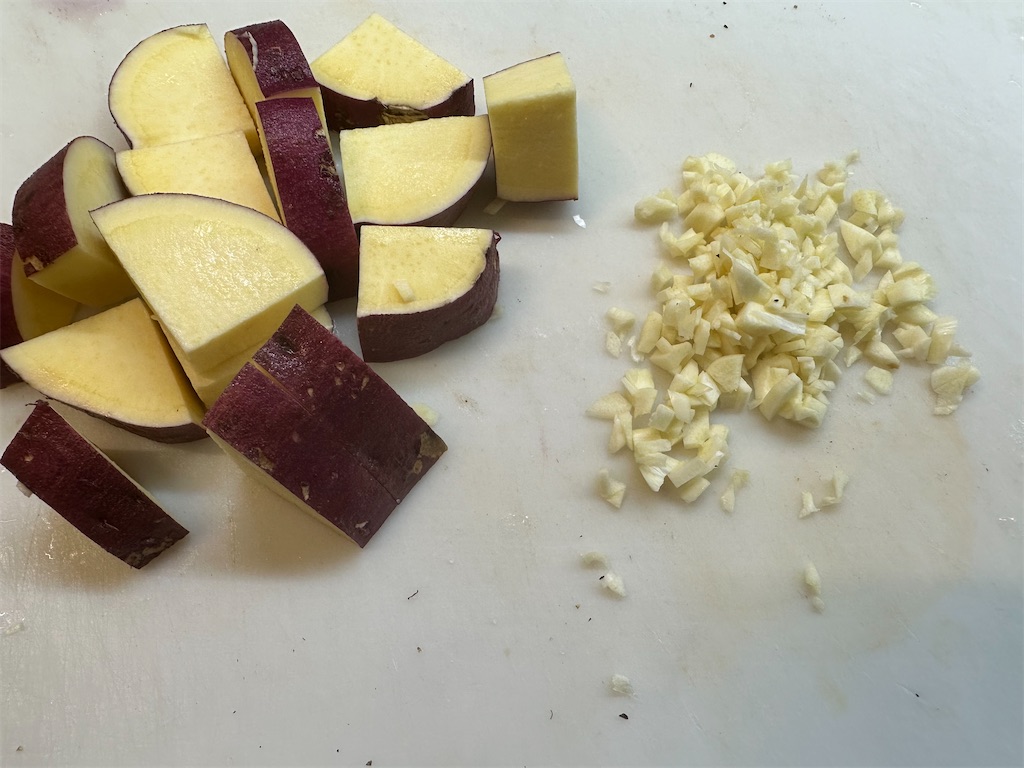 さつまいもは洗って、1センチ幅のいちょう切りにします。