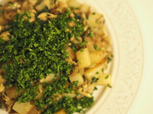 盛り付けて、パセリ・粉チーズをいれて完成です。