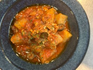 一見合わなさそうな材料ですが、トマトの旨味成分と白ワイン、味噌のコクがそれぞれを引き立てます!