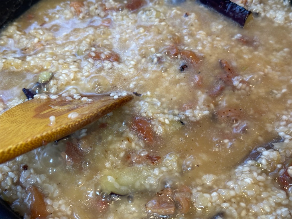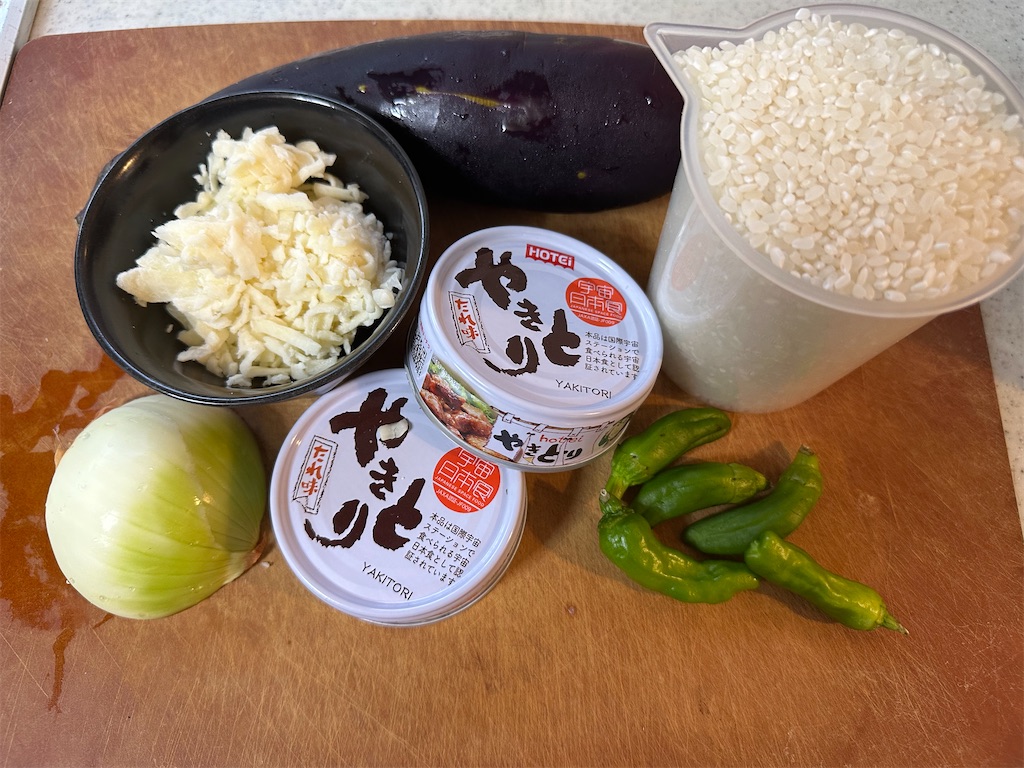 「ナスとやきとりで簡単リゾット」