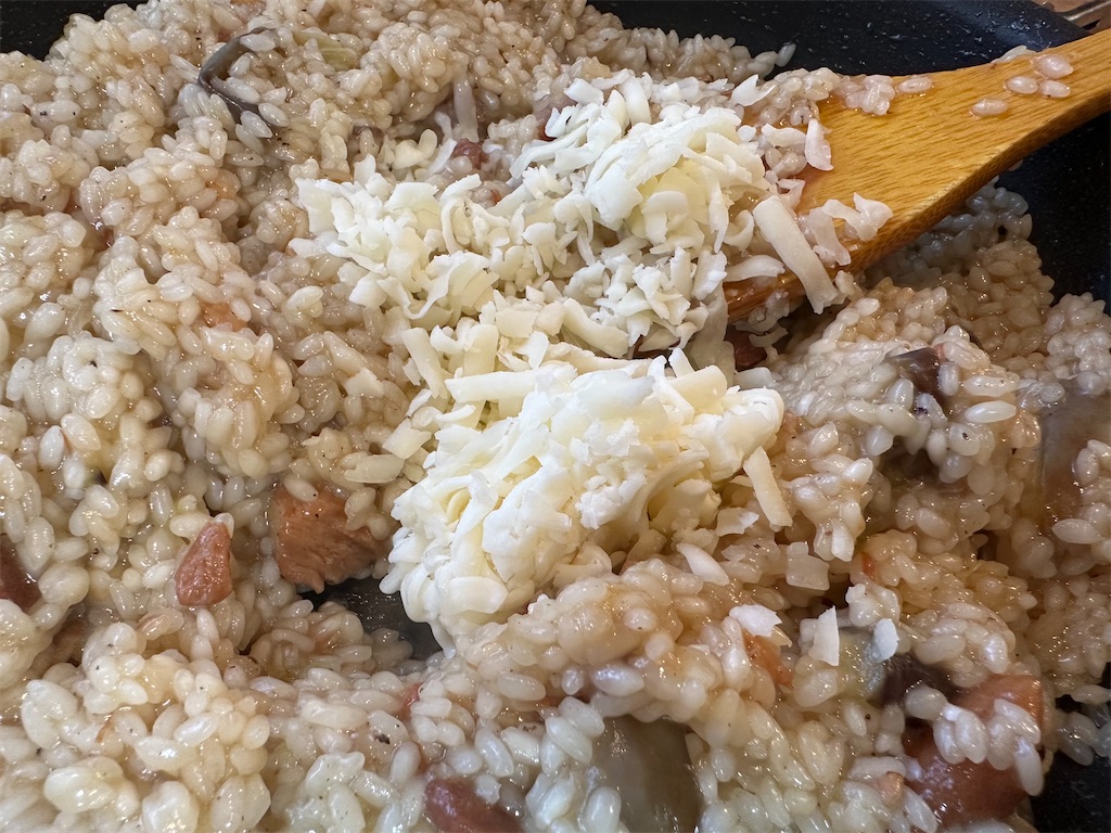 お米は少し硬めで、フォークでも食べれるくらいの濃度がリゾットとして理想です。