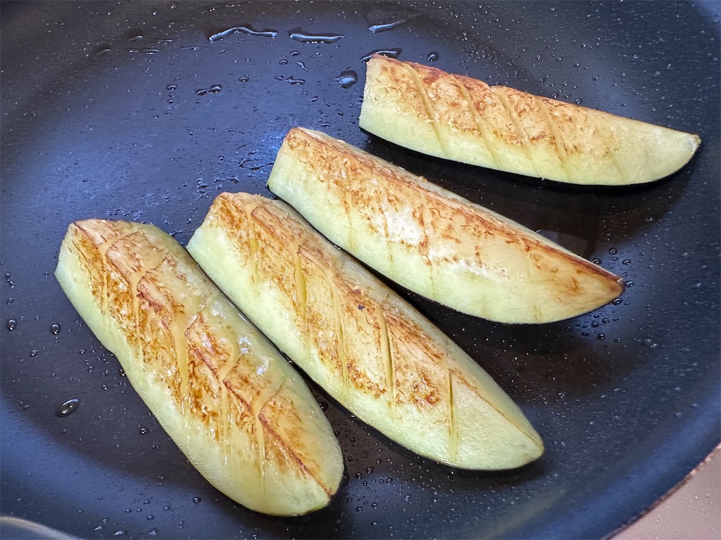焼き色がついたら、ナスを取り出します。